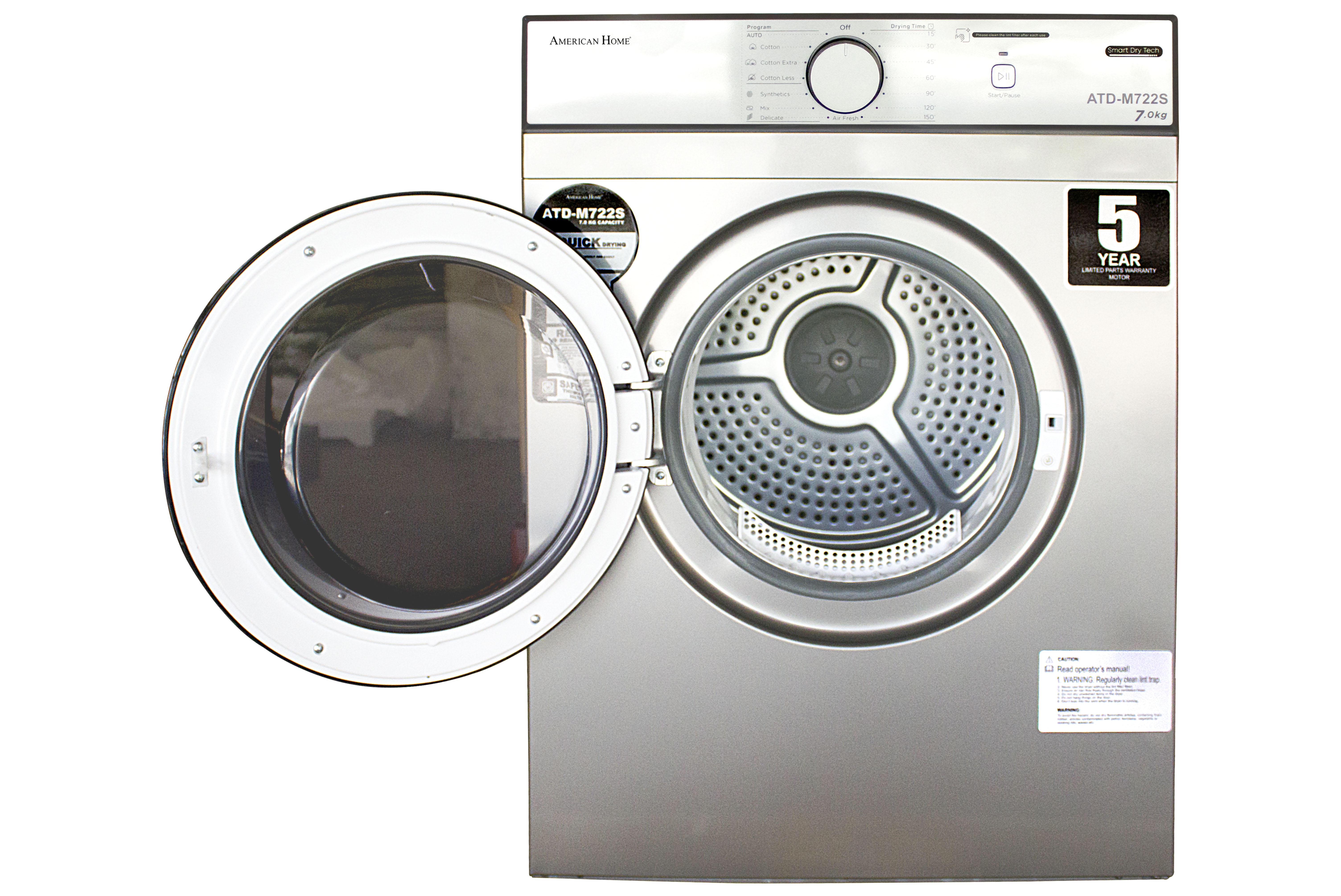 • Quick Drying • Air Vented Drying • Refresh Remove Odors • Safety Thermostat Heater • Fast Revolution • Lint Filter • Fabric Selector • Wide Door Opening • Stainless Steel Tub • Metal Body